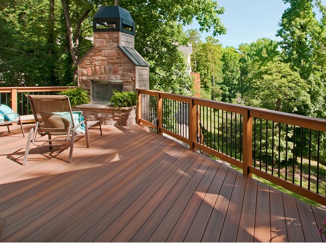 There is a wide variety of materials to choose from whether you opt for a deck or a patio. Deck options include pressure-treated lumber, redwood, or cedar. If you are seeking a premium look, think tropical hardwoods like tigerwood or ipe, which are darker in color, tightly grained and denser/harder than more moderately priced material.